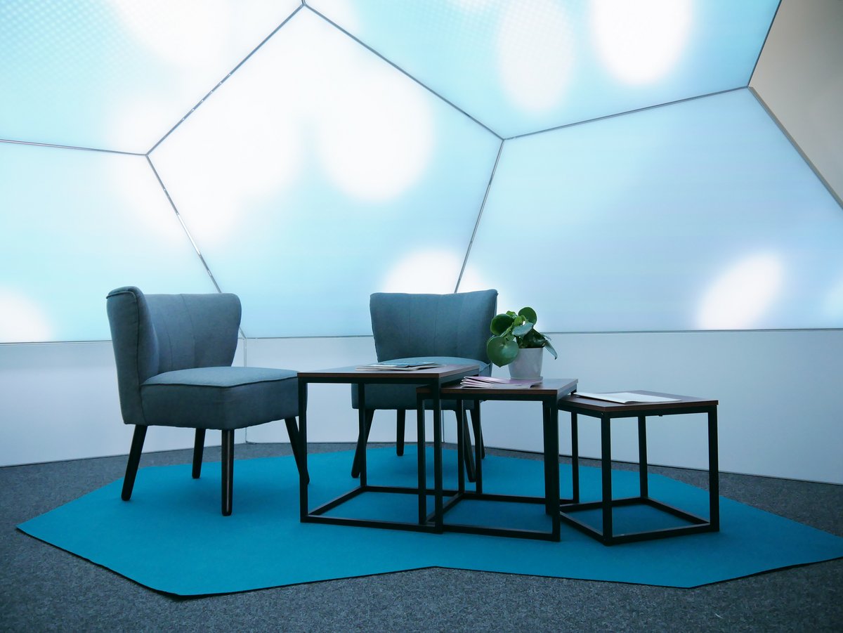 Dieses homogene Flächenlicht zeichnet sich nicht nur durch technische Merkmale wie einem pixel pitch von 20 mm oder ein weiß kalibriertes RGBW System aus, sondern lädt durch seine Videofähigkeit auch zum Variieren der Lichtstimmung ein. Durch dieses adaptive System kann die Rauminformation jederzeit dynamisch an neue Bedingungen, Vorstellungen oder Wünsche angepasst werden.